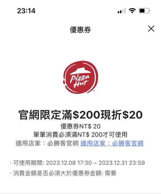 → VL1003: 昨天拿到就直接買掉,平日 199 大披薩再加 1.162.39.39 12/09 11:27