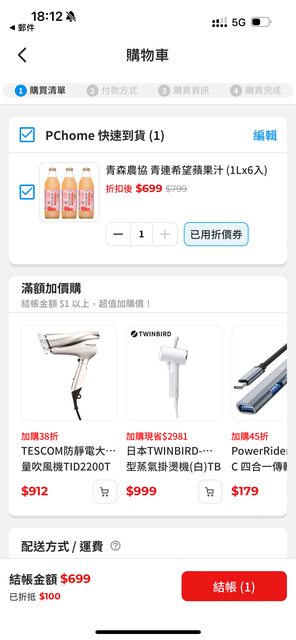 推 bboy5j: 現在還是有-100,等於是結帳699元。但我很 180.217.10.79 12/11 22:27