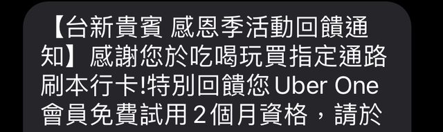 → dave070715: 必須是不是Uber one 會員,但等這兩個 101.10.56.139 12/13 20:10