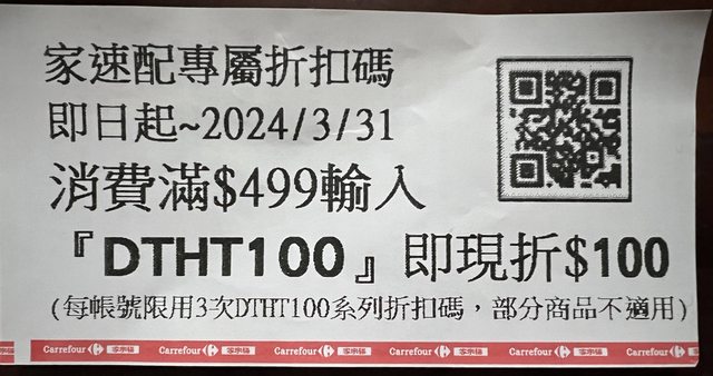 → huiminyu: 家速配和店內價格一樣,家樂福線上會貴 101.10.7.152 12/22 13:38