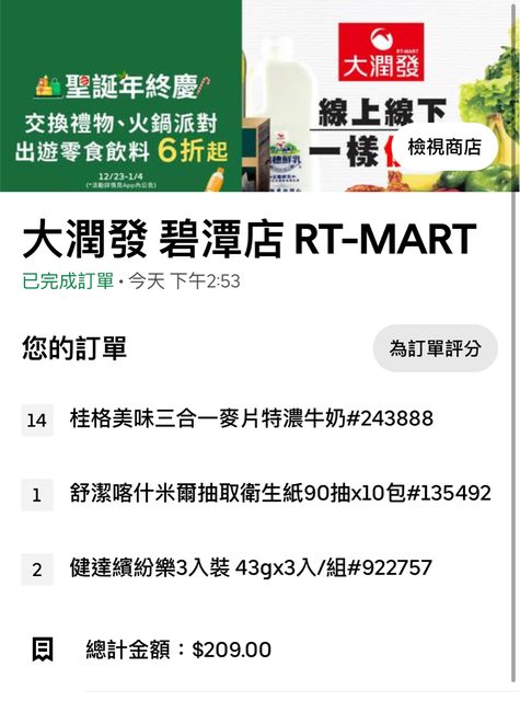 推 zzzzzlss: 可惜 沒大潤發 101.10.8.101 12/30 19:01