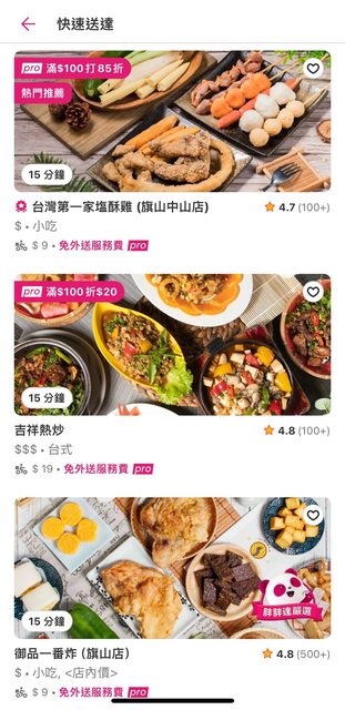 正在等待餐點到來的同時分享給大家~~~ 剛剛點開foodpanda要點餐 發現現在好多店家的運費只要$1元超爽的 然後還有的是$9、$19元,比以前便宜好多! 勿過度敏感 單純分享優惠而已 附上晚上訂單截圖跟app畫面供參 https://i.imgur.com/TYfnAfr.jpg