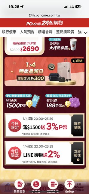 → Janius: 更新,目前確認有看到3%P幣+1% Line點 114.37.172.228 01/04 20:42