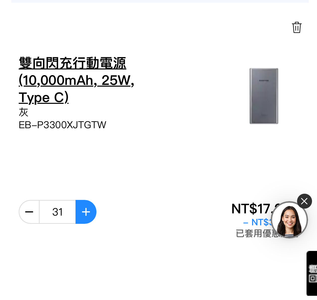 推 ch710181: 行動電源沒法加購物車 27.52.128.214 01/18 00:01