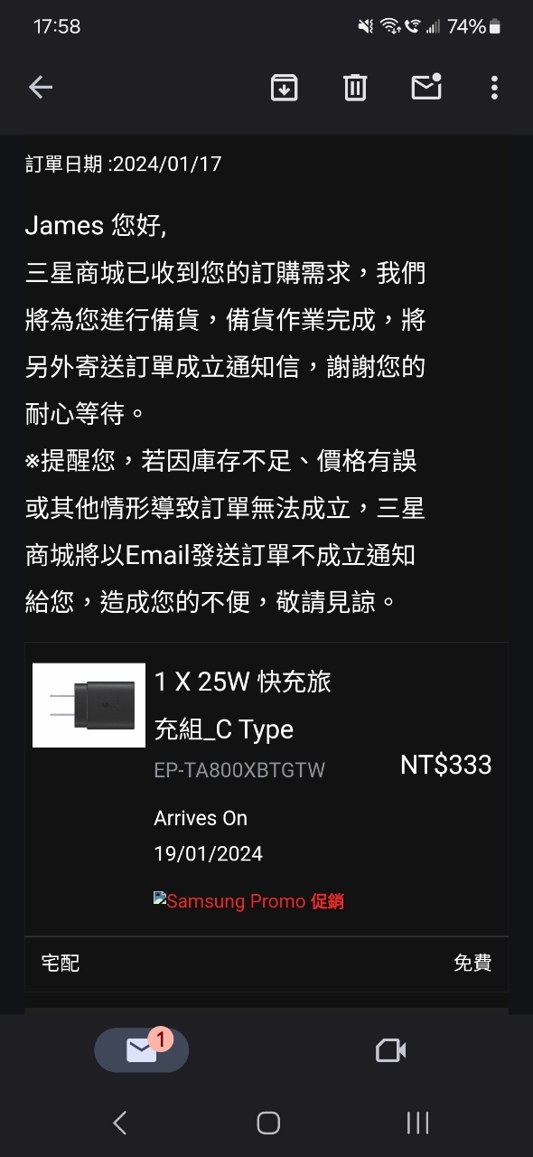 推 zazazas: 樓上 買完會收到訂單、付款郵件各1封111.249.221.200 01/18 02:09