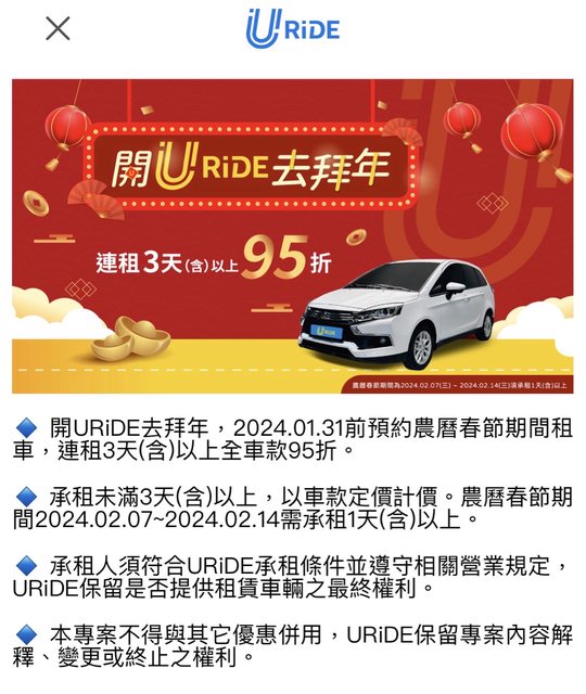 推 ABBCCC: 過年租車有折扣好讚喔 反正24小時都可以114.136.220.231 01/24 22:56