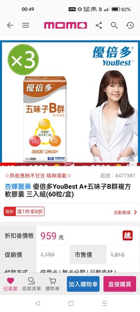 標題[情報] 優倍多五味子B群 959元