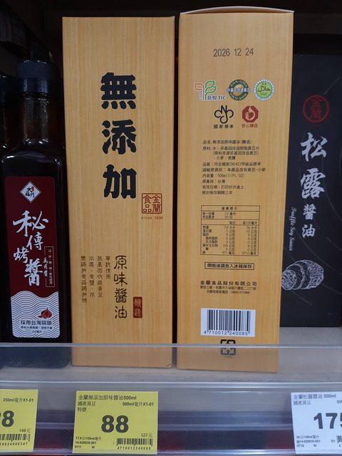 推 jimmyfk: 龜甲萬本釀比金蘭無添加好, 只是貴一點~ 39.15.34.28 01/26 11:43