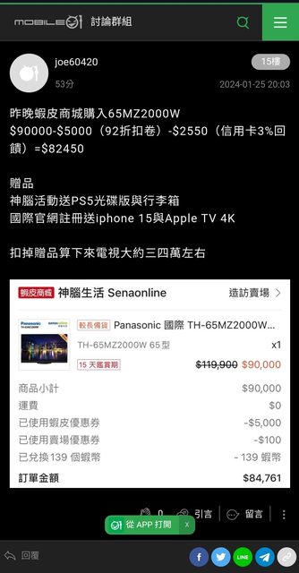 → xhl12000: 變現i15約25k+PS5約14k+ATV3.5k=43k 123.192.207.79 01/31 22:42