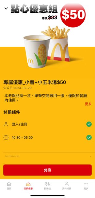 → mnxzq: 55元+甜心卡就有大湯+小薯27.53.130.162 02/01 16:15