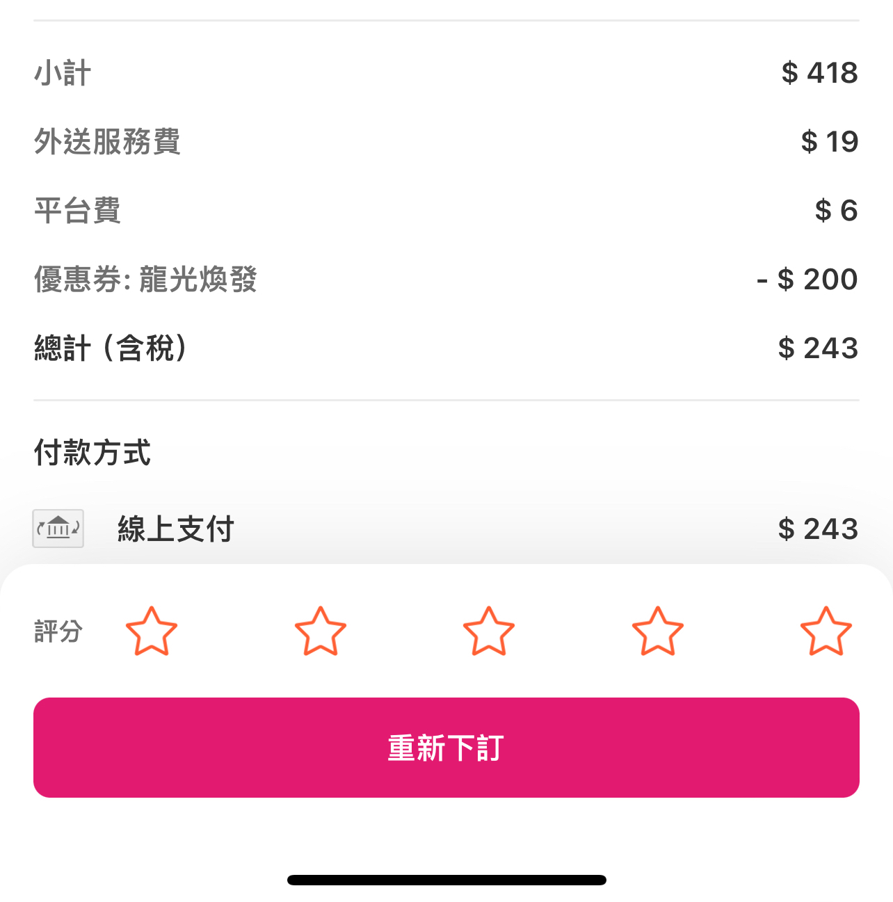 推 fin2008: 外送點一點券就不能用+1,好爛 114.45.140.195 02/12 13:45
