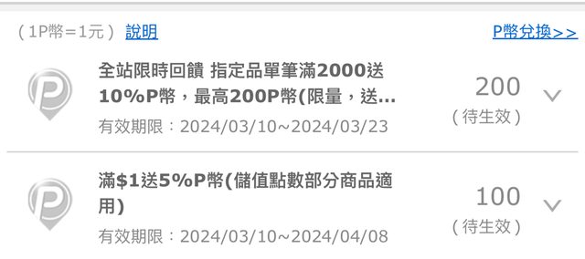 → jasome: 只有5%(100P)的 有人有收到10% 200P的嗎~ 27.52.230.175 02/25 20:57