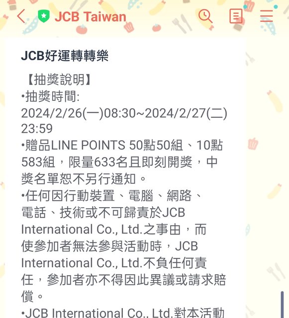 推 chillybreeze: JCB抽獎從沒中過 61.227.234.240 02/26 09:28