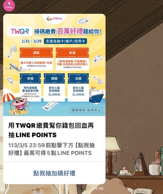點擊立即抽line points 有1P/5P/0P https://i.imgur.com/khbqHjy.jpg