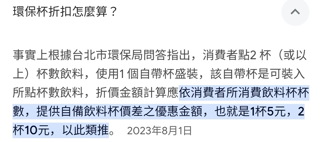 推 fox308: 不可能,環保杯折五元是政府規定的1.171.235.153 03/14 20:21