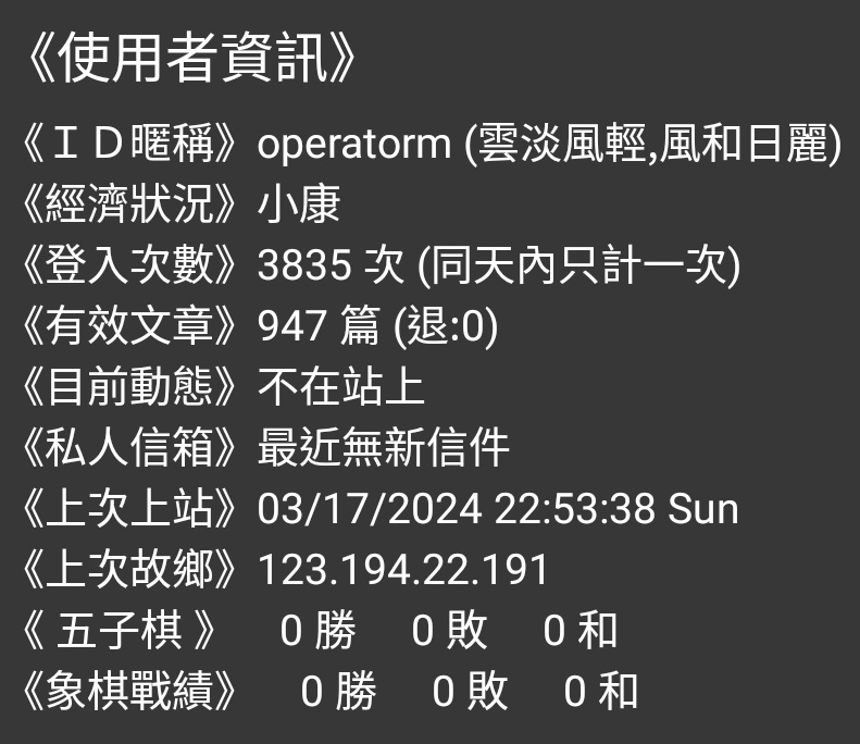→ whisperstar: 樓上這麼說 今天也覺得問題跟ID怪怪114.136.134.26 03/17 20:49