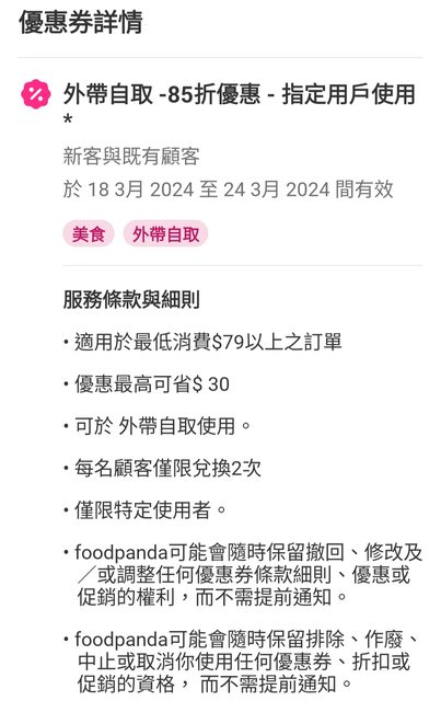 推 gnsheila: 滿79 85折券,剛剛用了一次自動消失,沒 49.217.134.65 03/21 12:55