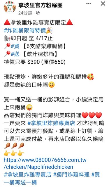 噓 Raphael888: 都只有炸雞店有活動,不能同步嗎 223.141.28.88 03/23 02:37