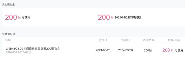 推 TZUYIC: 沒有購物金,看來我還不夠鐵粉,繼續冰。 101.136.249.14 03/25 15:23
