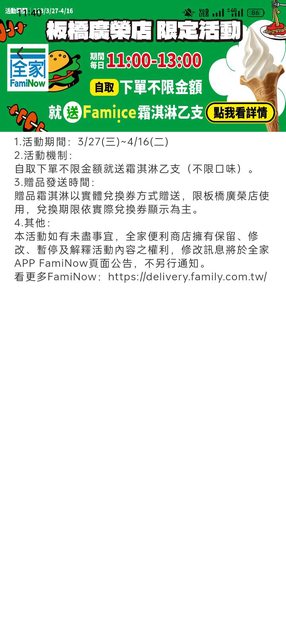 標題[情報] 板橋限定全家 Faminow自取不限金額送霜淇