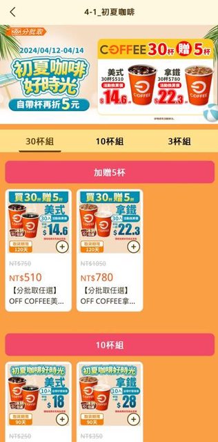內容:初夏咖啡好時光 咖啡買30送5