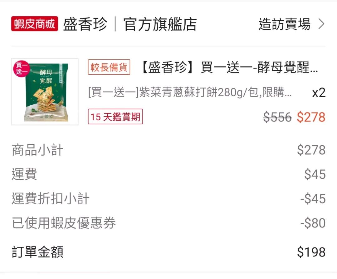 lyhorcish: 香珍蘇打餅乾常買一送一,今天剛取貨 61.61.93.9 04/13 18:09