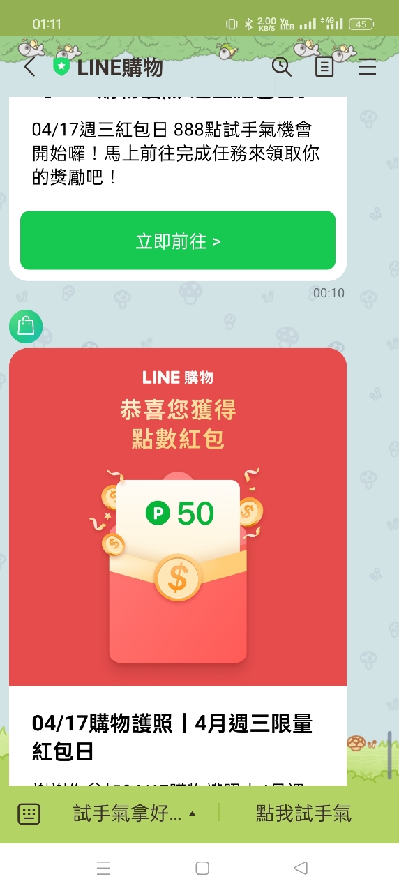 aaronses7118: linepay還抽到50 A____A 27.51.81.55 04/17 01:12