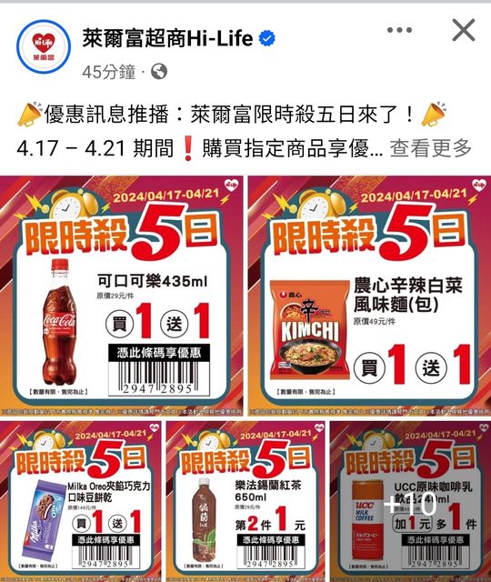 推 zardmih: 終於看到萊爾富的優惠 之前只有-4跟全家 111.82.70.139 04/17 18:26