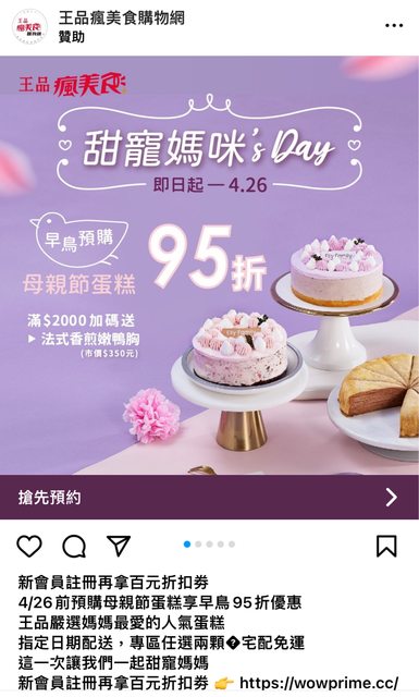 標題[情報] 王品母親節預購蛋糕95折+加入會員100折蜥