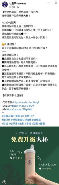 4/22自備環保杯可以用環保集點APP1600點換小七美式,請注意活動到下午六點