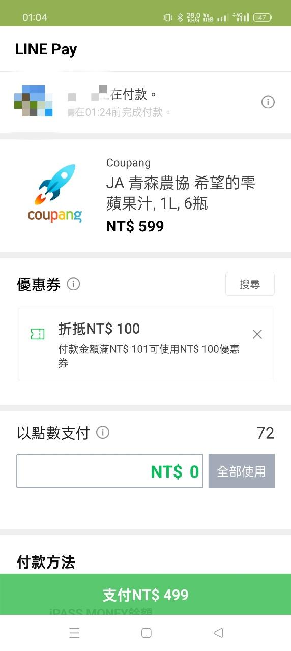 → aaronses7118: 上次linepay再折100更棒 39.15.73.8 04/25 13:37