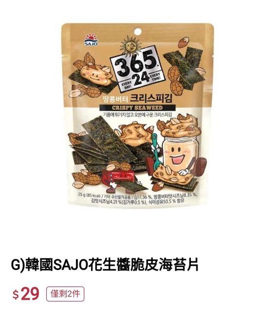 → aqn23520: 有買到三層餅乾跟花生醬油海苔片,不知 39.12.48.207 05/02 17:36