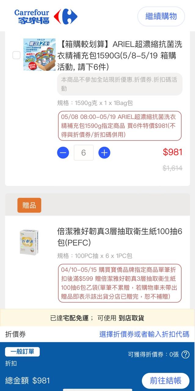 → swfmtm: 家樂福線上購物981元送一袋衛生紙 1.168.150.132 05/11 01:55