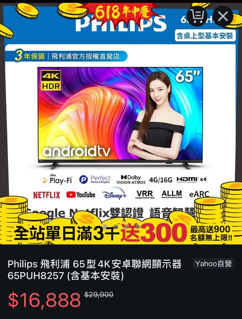 yahoo也有一台飛利浦65吋 型號是65PUH8257 比價之後也是最低價 https://reurl.cc/KeD9Km 結帳$16,888再送900購物金 https://reurl.cc/OMDmbA 這台跟遠傳那台有沒有比較推哪台 -- ※ 發信站: 批踢踢實業坊(ptt.org.tw), 來自: 42.70.2.16 (臺灣) ※ 文章網址: https://ptt.org.tw/Lifeismoney/M.1717603933.A.B2F