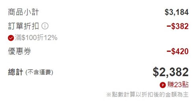 訂單折扣88折+85折券 含商品本身8折,綜合折數59折 $2382 真的超便宜… 價格擠進2.5k以內,以Rider 28來說算是符合高CP值了 https://reurl.cc/70qKp9 其他Rider 27的價格我看應該更低 https://reurl.cc/z1kK9Q 還有送TAIWAN束口背袋 https://i.imgur.com/8Do7TM2.jpeg