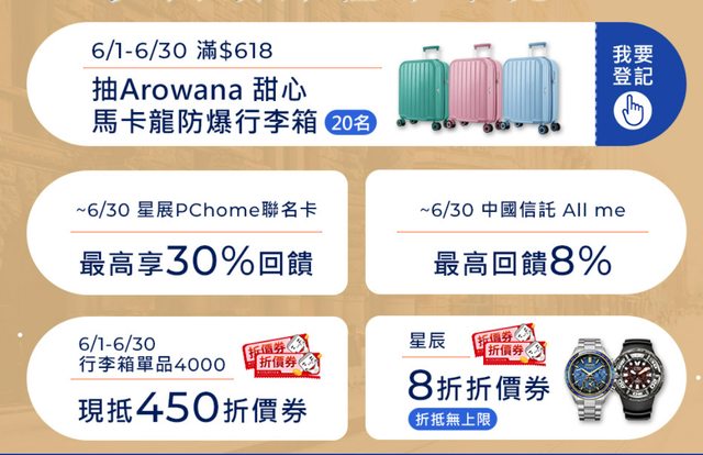 今天20:00~23:59滿4000可以送4%P幣回饋