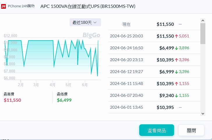 PC家 APC 1500VA在線互動式UPS (BR1500MS-TW) 原價 11,500 特價 6,499 APC指定商品 滿$5888贈『晶工9吋空氣循環電扇JK-169』 還有 一張500元的折價券可用 最終價格5,999元 -- ※ 發信站: 批踢踢實業坊(ptt.org.tw), 來自: 36.228.192.183 (臺灣) ※ 文章網址: https://ptt.org.tw/Lifeismoney/M.1719230908.A.70C