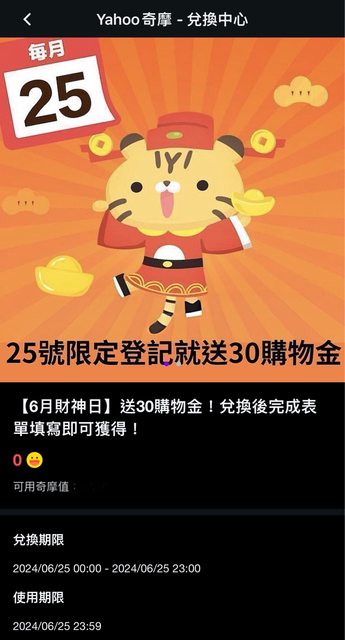 標題[情報] Yahoo奇摩app登記免費領30元購物金