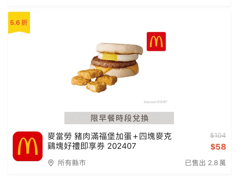 推 inday: 蝦皮有滿福堡+雞塊58元唷 180.176.70.167 07/09 18:16