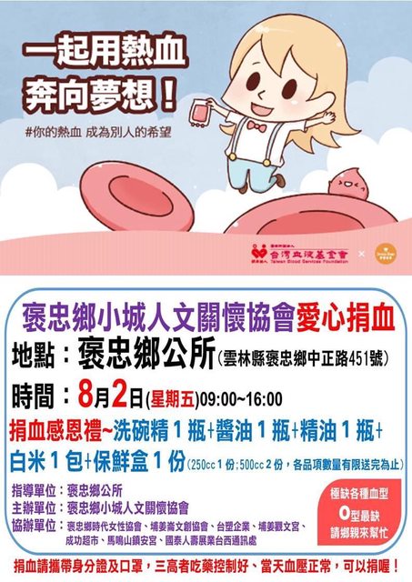 8/2(五):雲林褒忠鄉公所 09:00~16:00 送白米、洗碗精、醬油等好禮/加倍送