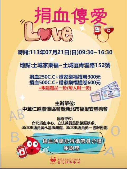〝〝〝台北捐血中心臉書粉絲團:https://www.facebook.com/taipeiblood〞〞〞