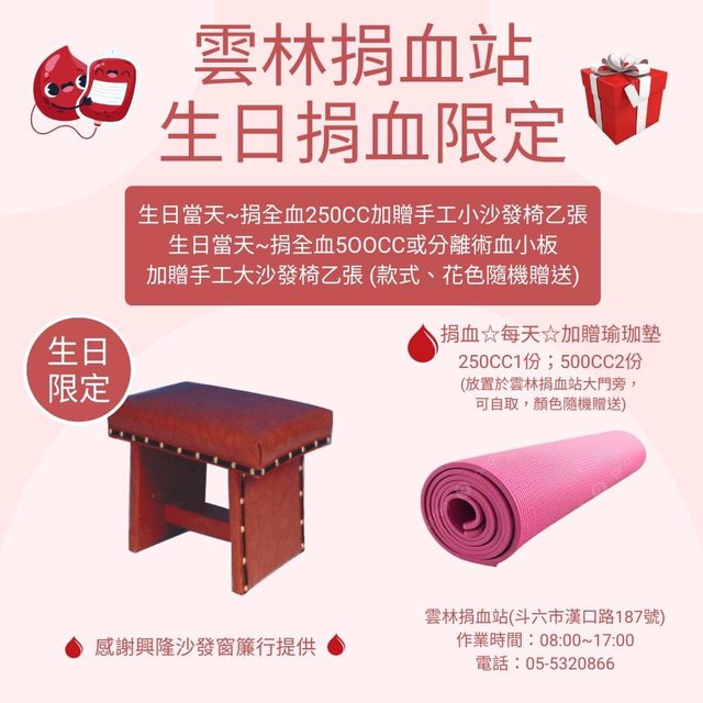 《長期活動》雲林捐血站 捐血加贈瑜珈墊1份/2份;