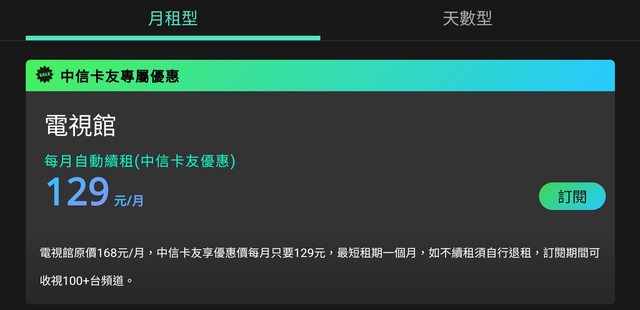 推 tkps940621: 感謝分享 非中信卡已順利訂閱 111.83.25.36 07/30 20:01