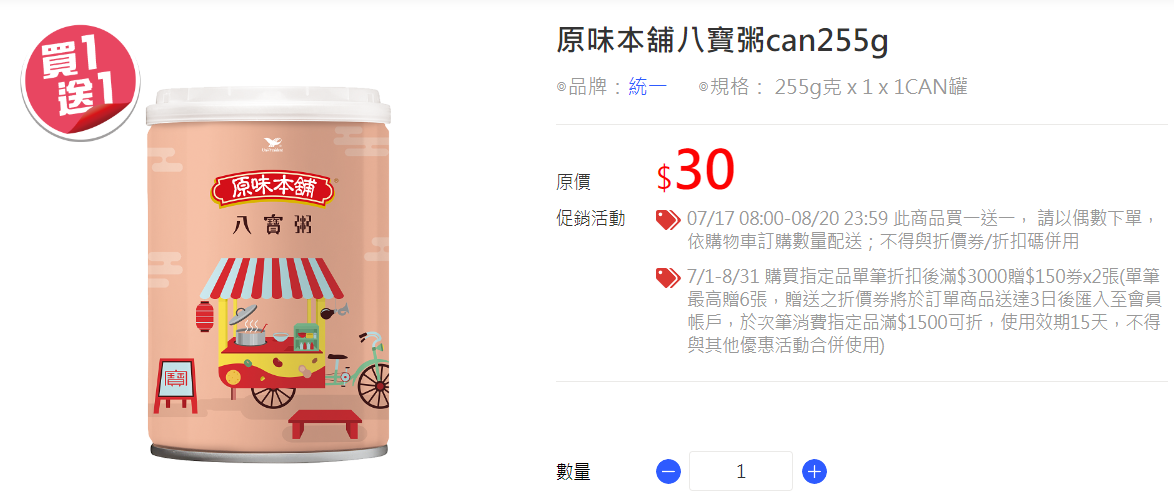 推 alstonfju: 上週家樂福買統一原味本舖八寶粥,六124.218.102.136 08/17 20:25