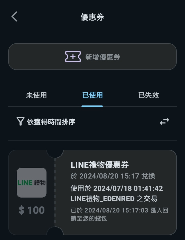 推 a910n242: 我買line禮物的,早上發券兌換了 49.217.60.7 08/20 15:33