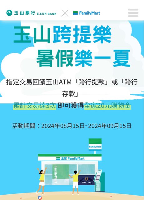 → flora1117: 不是,是拿其他銀行金融卡去全家玉山AT 114.136.244.88 08/30 20:59
