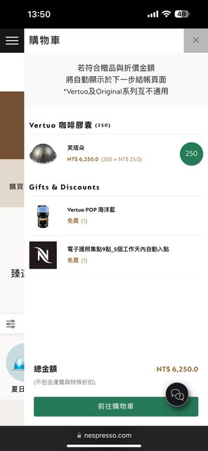 : 放250個VERTUO膠囊在購物車