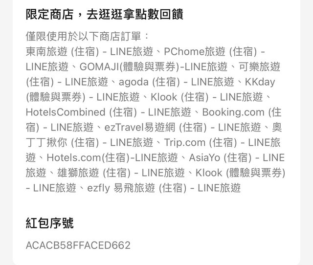 → Yuwuen: Line旅遊導購的金額 會少去點數金額嗎? 36.234.210.115 09/03 22:00