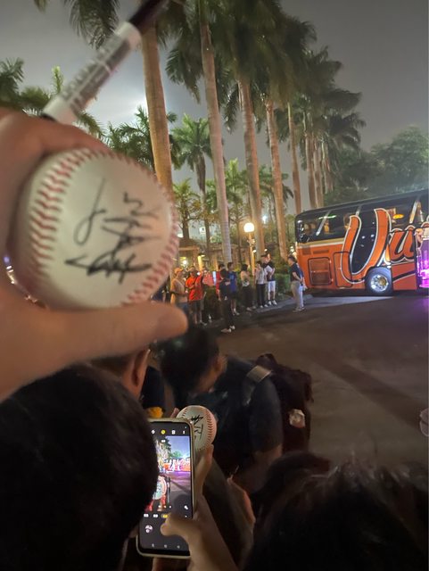 賽後,在等球員時我旁邊的球迷好像剛好是姚杰宏的朋友於是幸運的有了一顆簽名球,又