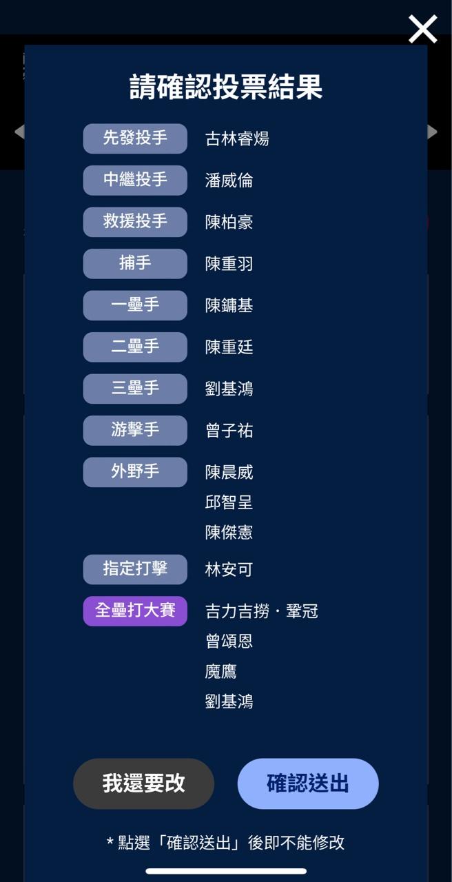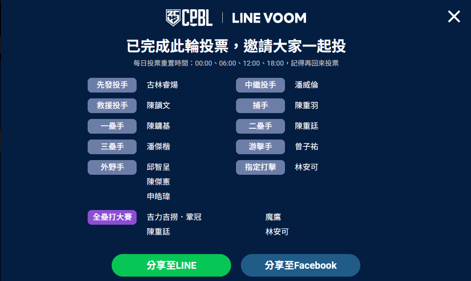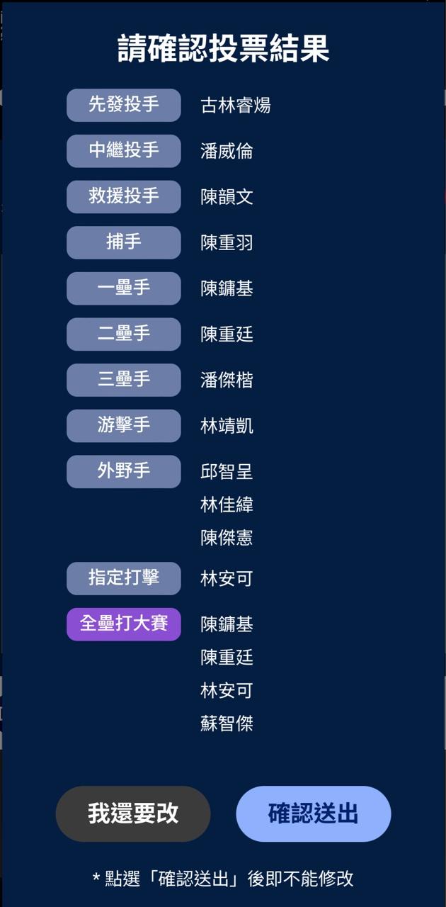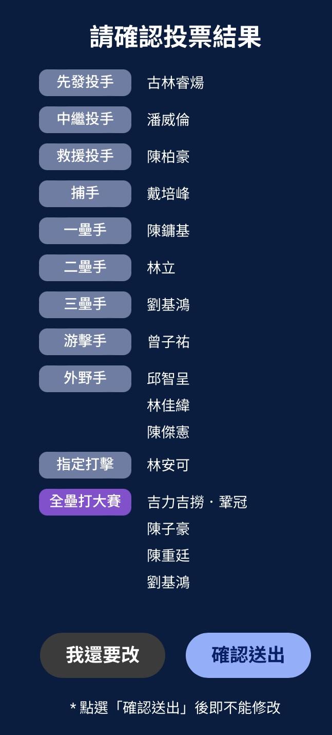 推 flyingsu: 大家多投票!雖然不少可能會到中華隊點有投有支持 05/14 14:13